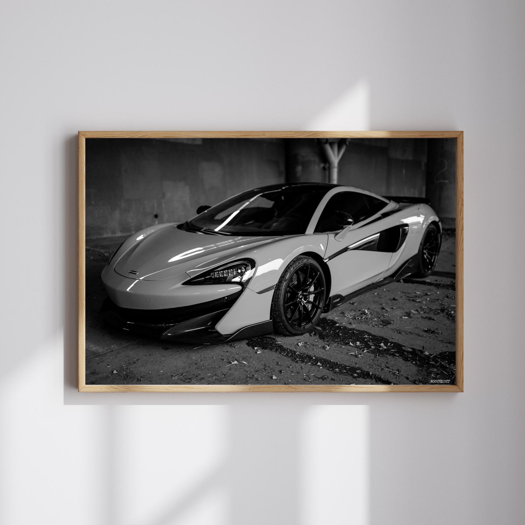 Upplev kraft, skönhet och brittisk ingenjörskonst i perfekt harmoni med denna exklusiva bild på en McLaren, fångad i ett ögonblick av stilla intensitet.