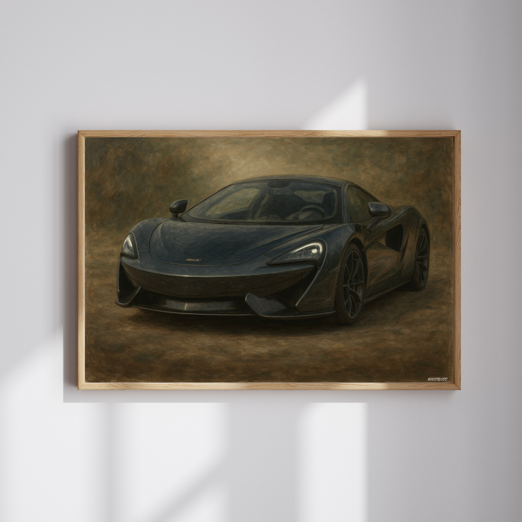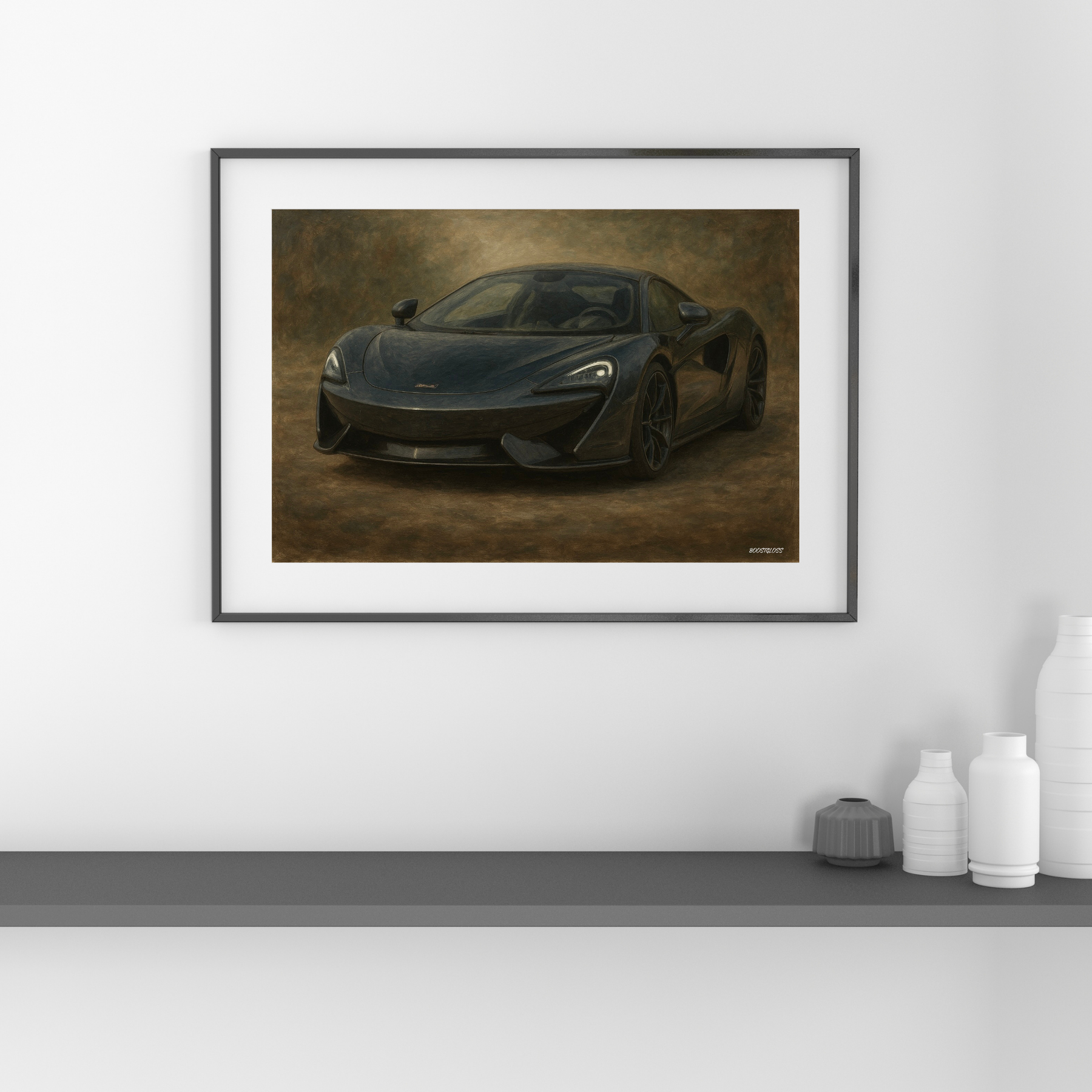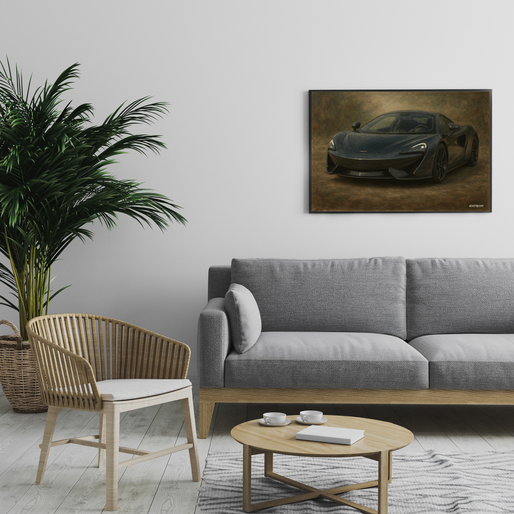 Motivet fångar den aerodynamiska siluetten och de skulpterade linjerna som definierar McLarens unika uttryck. Tryckt i Sverige på matt premiumpapper som framhäver motivets färgtoner och ger en mjuk, elegant yta.