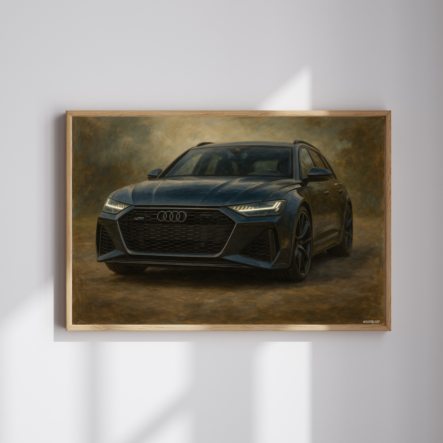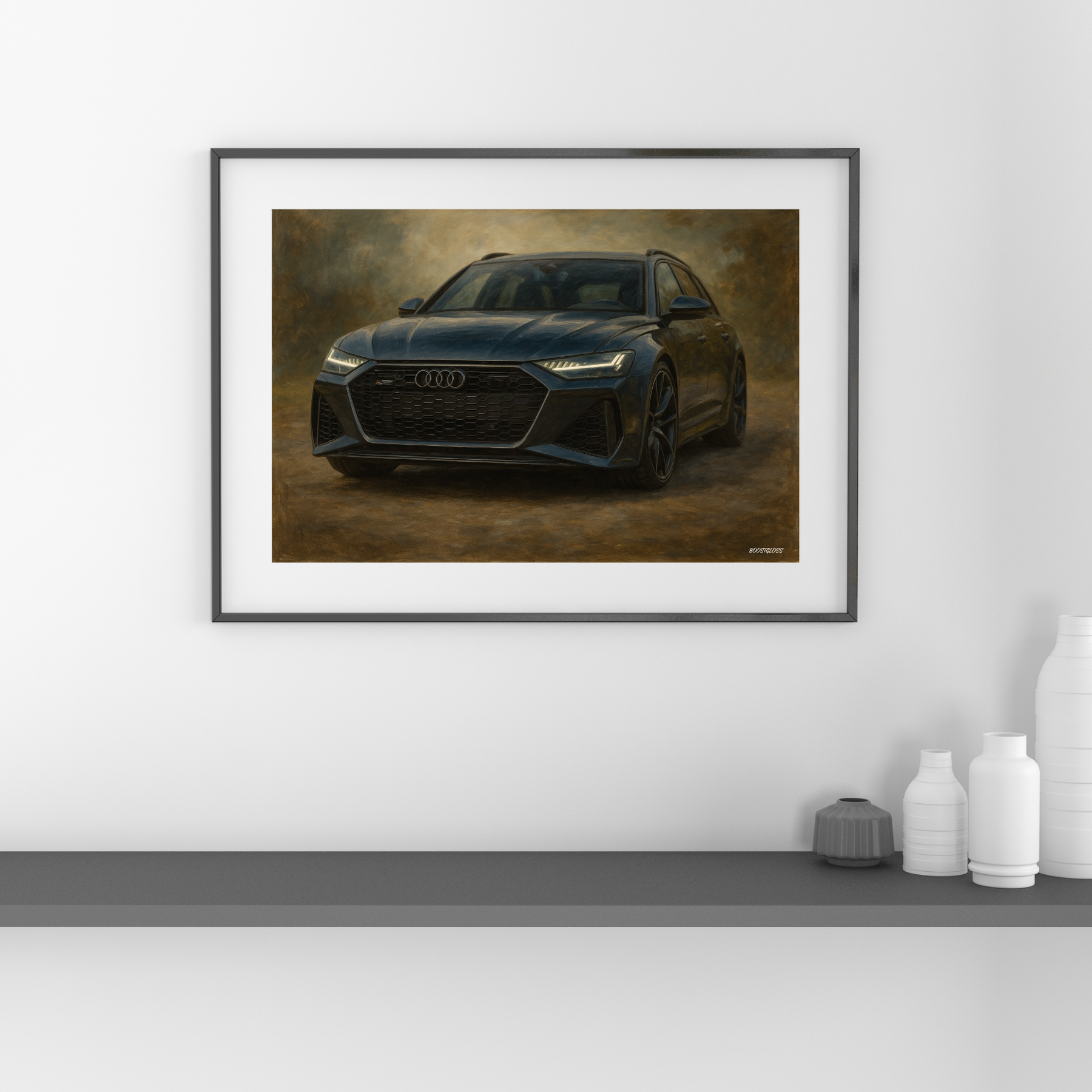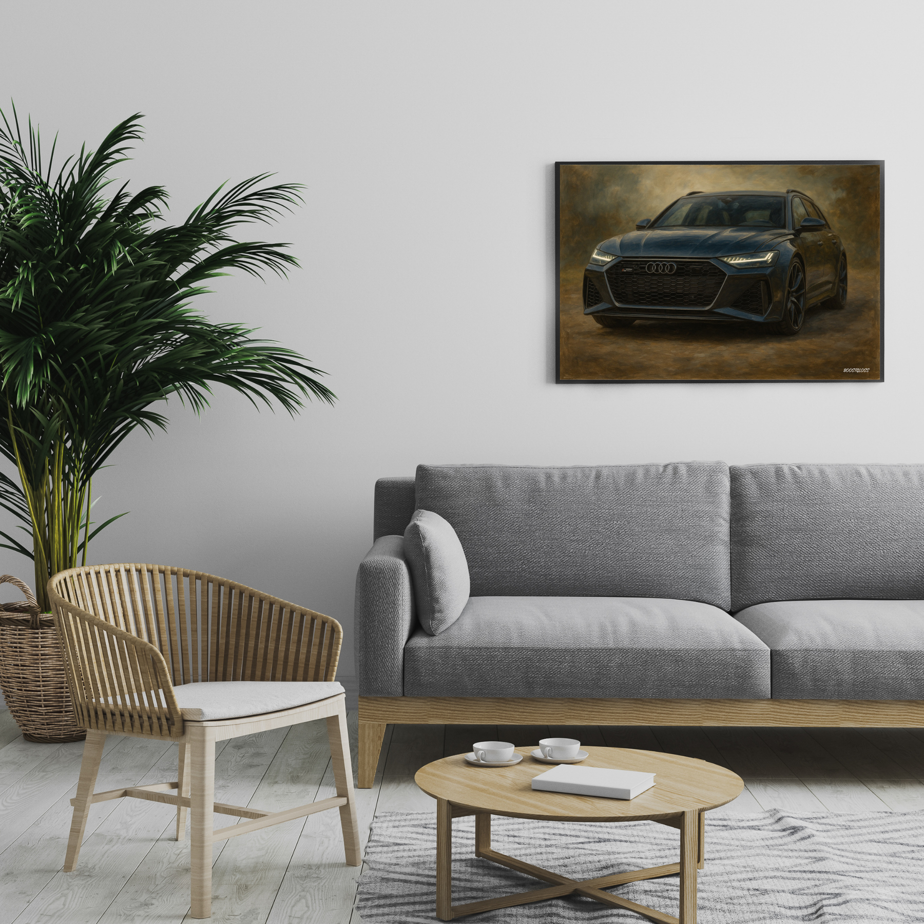 Ge ditt hem en känsla av kraft, elegans och modern prestanda med denna exklusiva konstposter som hyllar Audi RS6 – där familjekomfort möter rå motorstyrka.