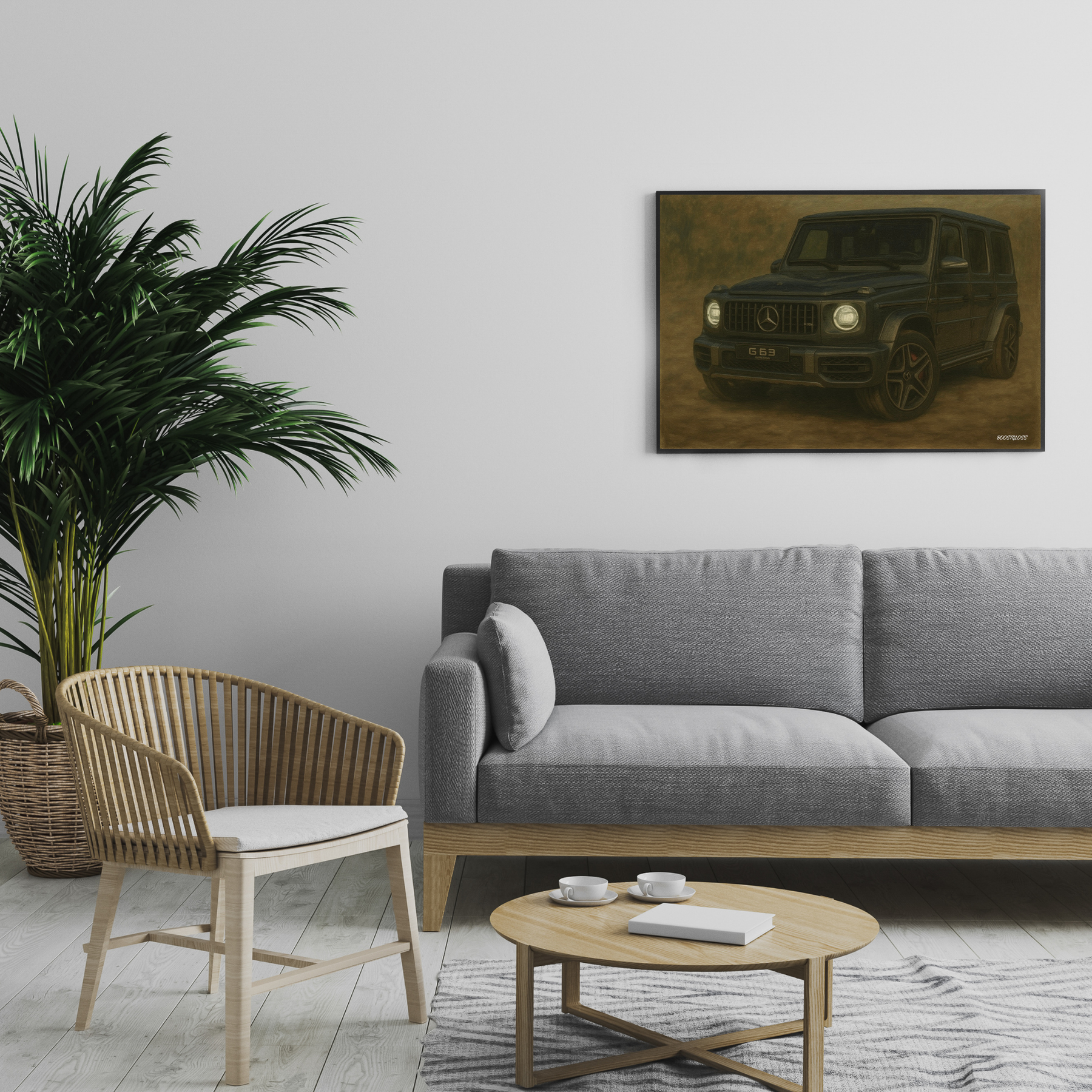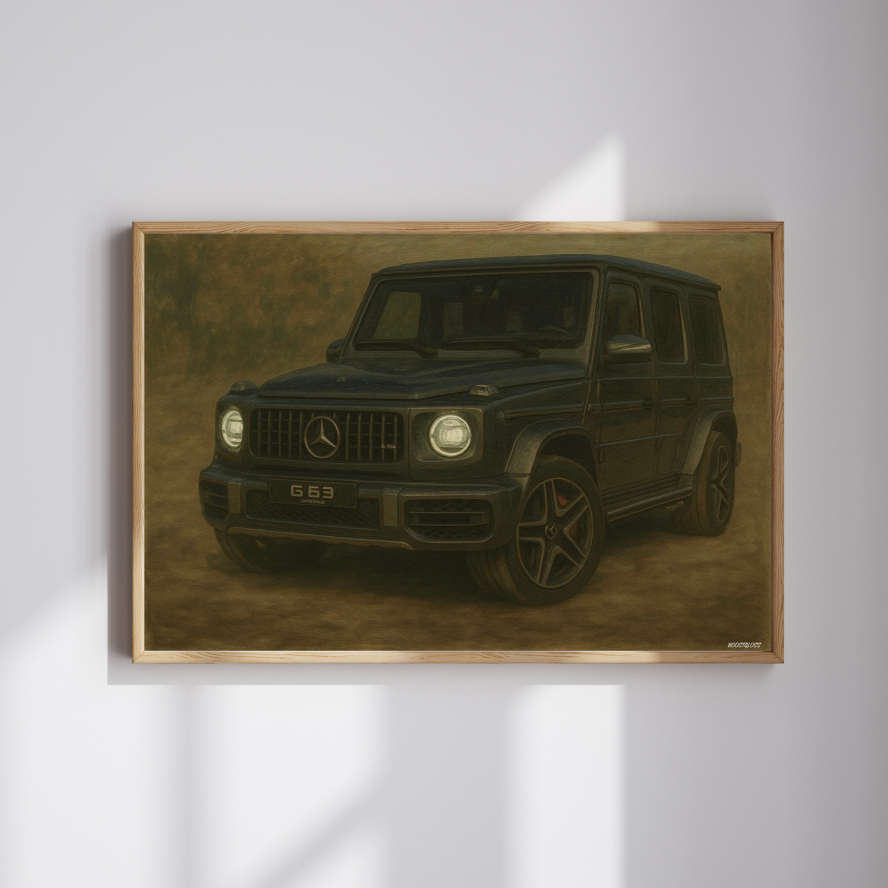 Ge ditt hem en känsla av lyx, styrka och tidlös design med denna exklusiva konstposter som hyllar Mercedes-AMG G63– en ikon som kombinerar brutal kraft med oöverträffad elegans.