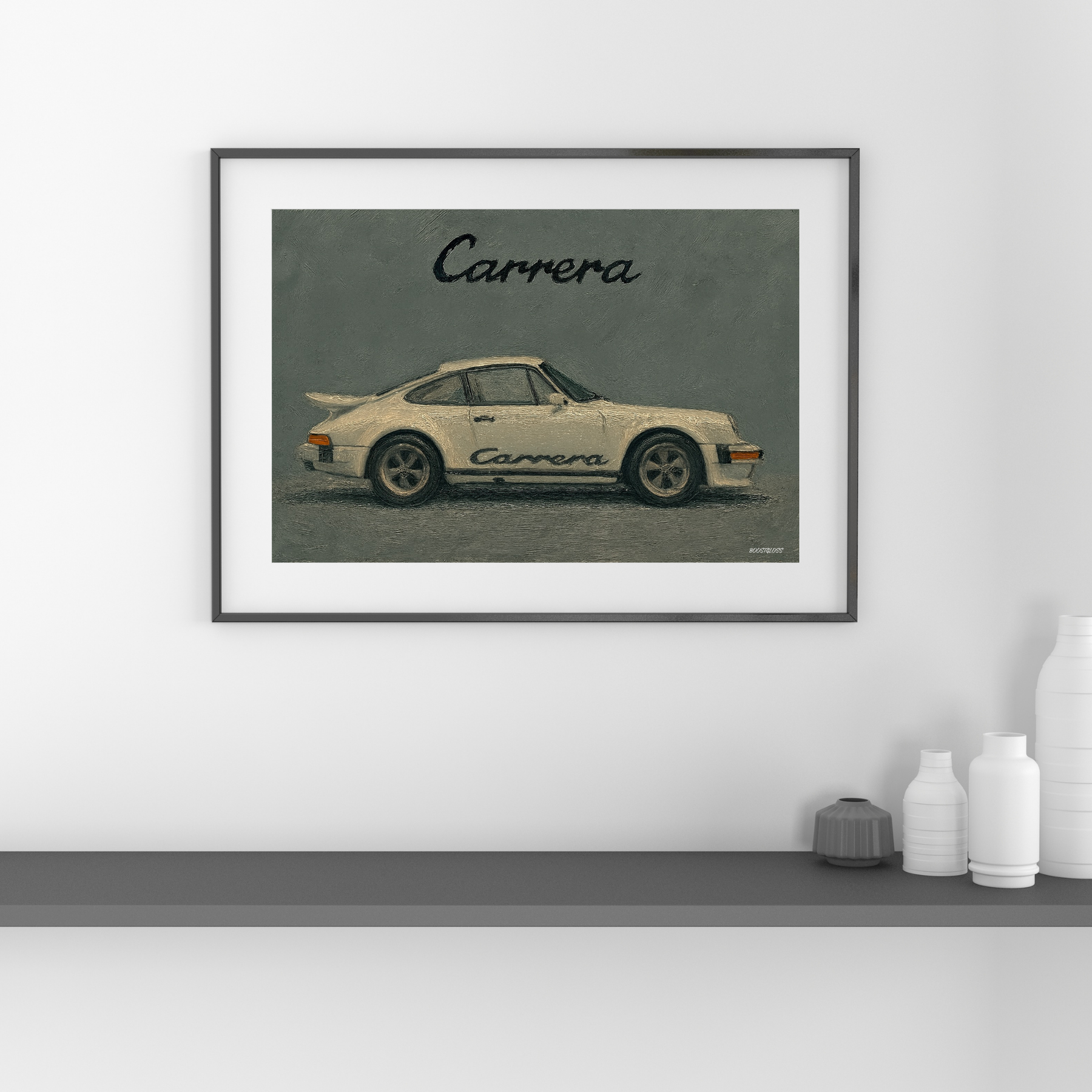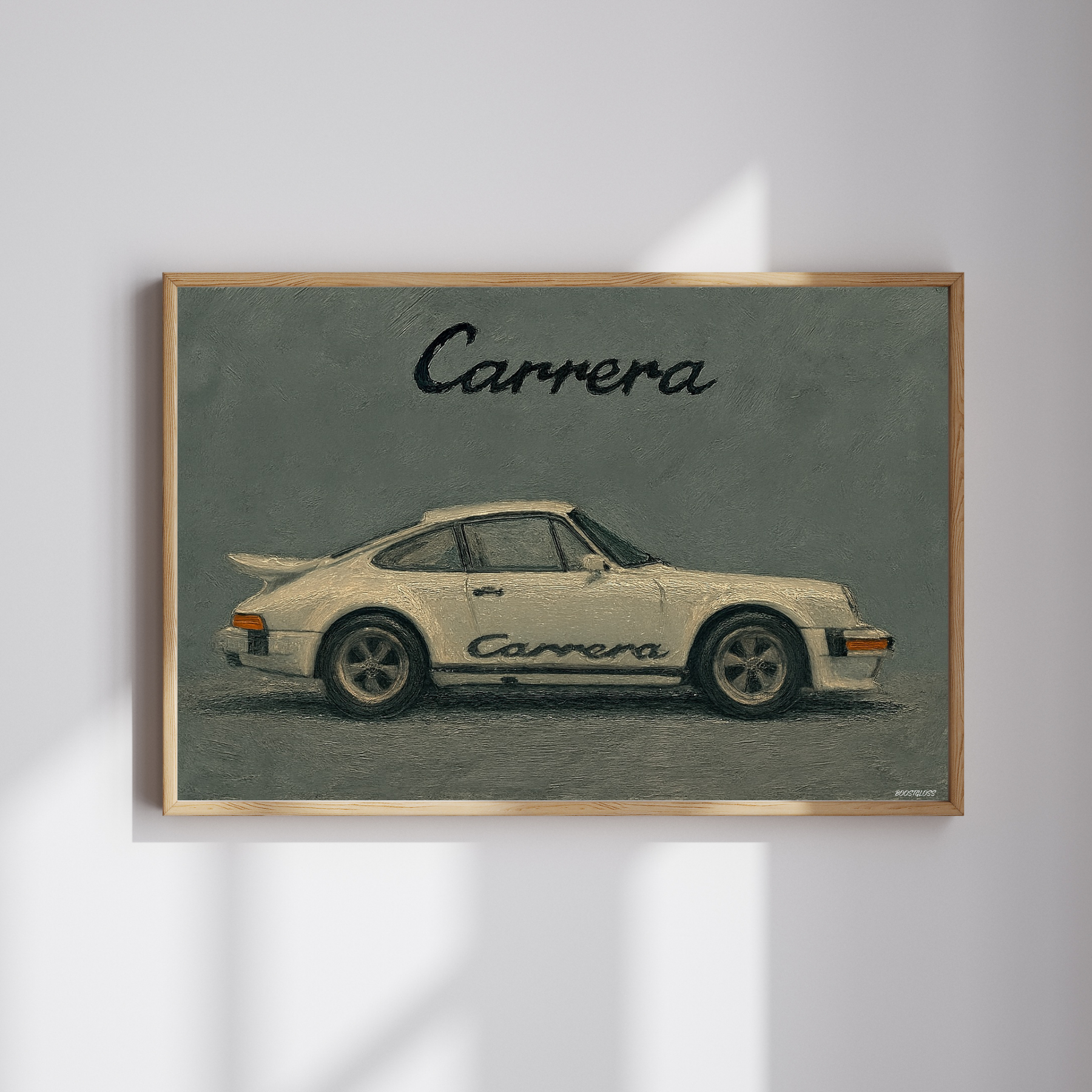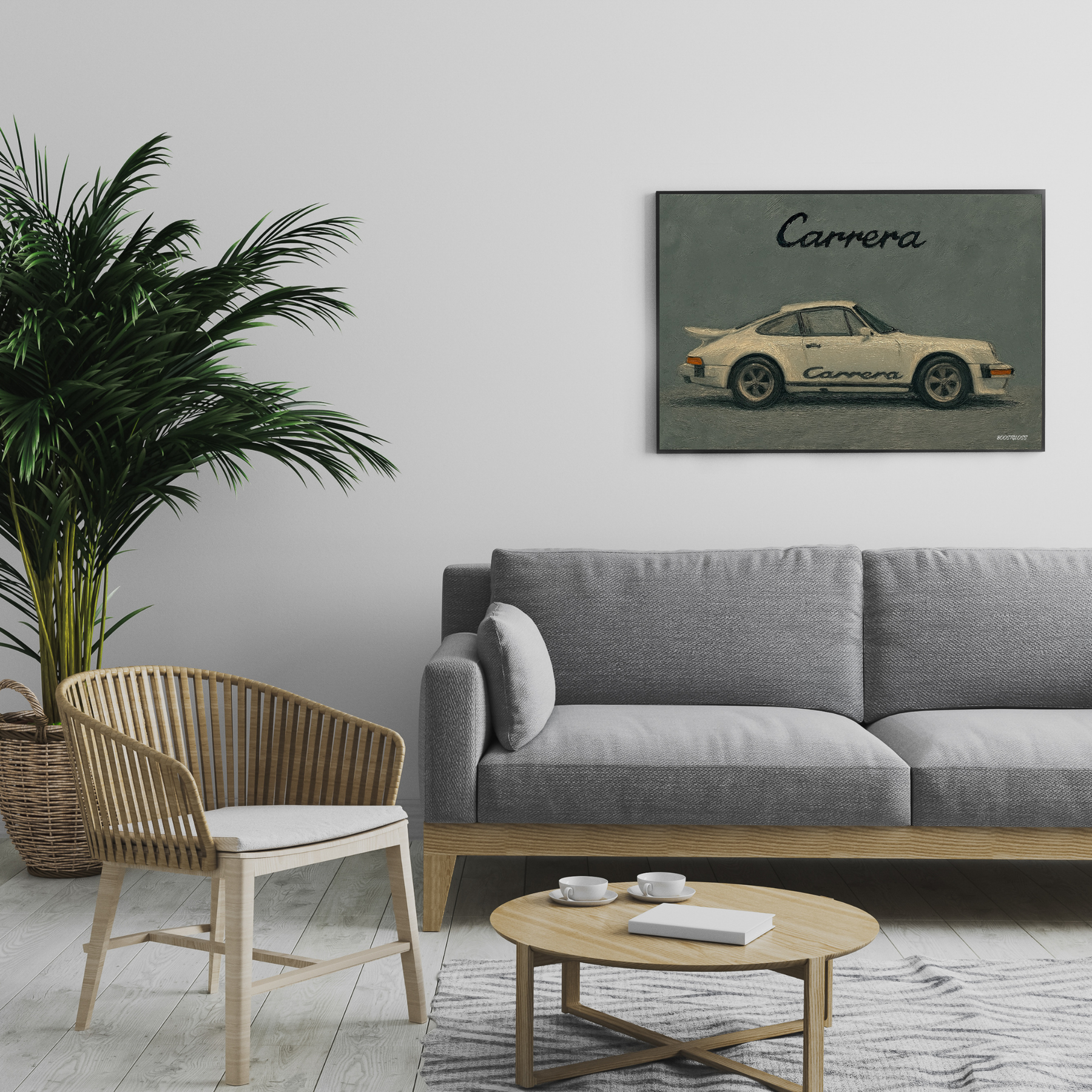 Ge ditt hem en klassisk och tidlös känsla med denna konstposter som lyfter fram en ikonisk Porsche Carrera i ett stilrent och konstnärligt uttryck.