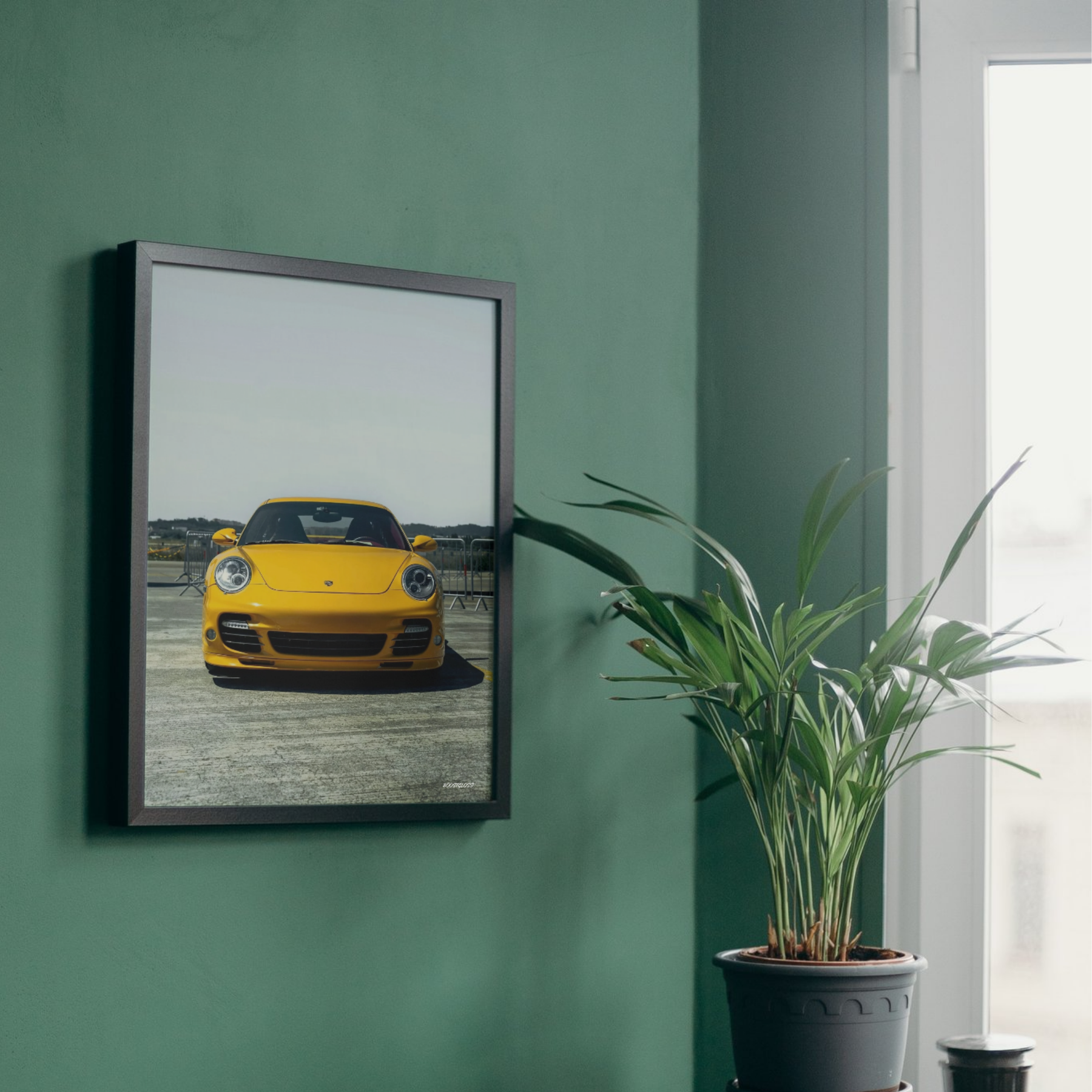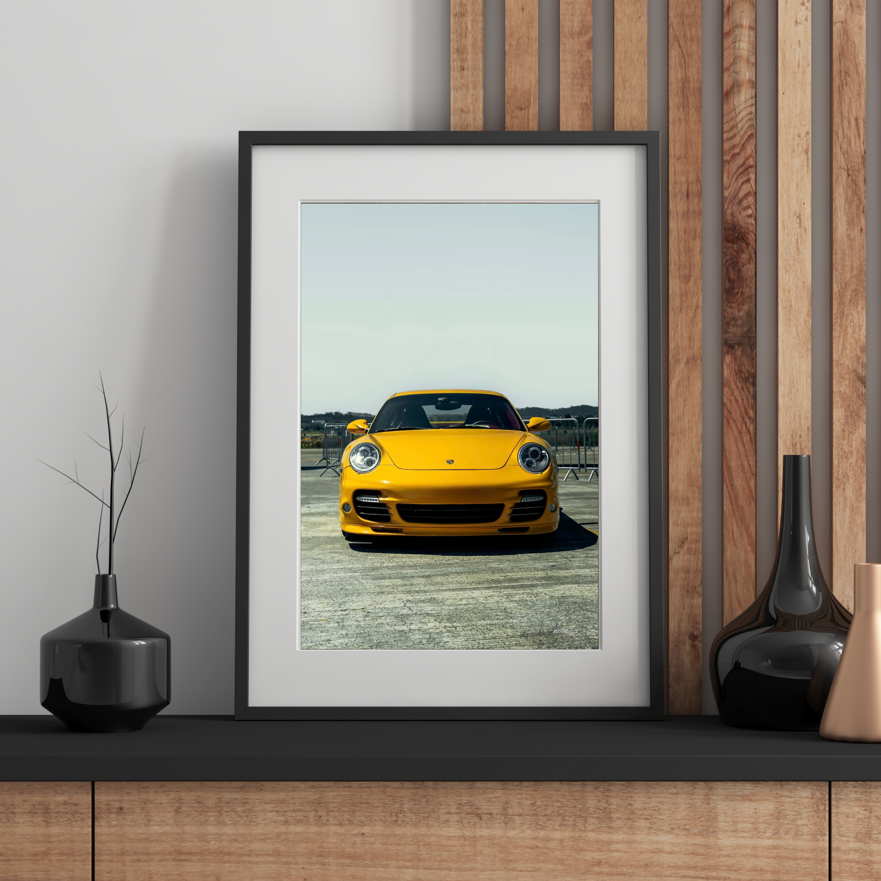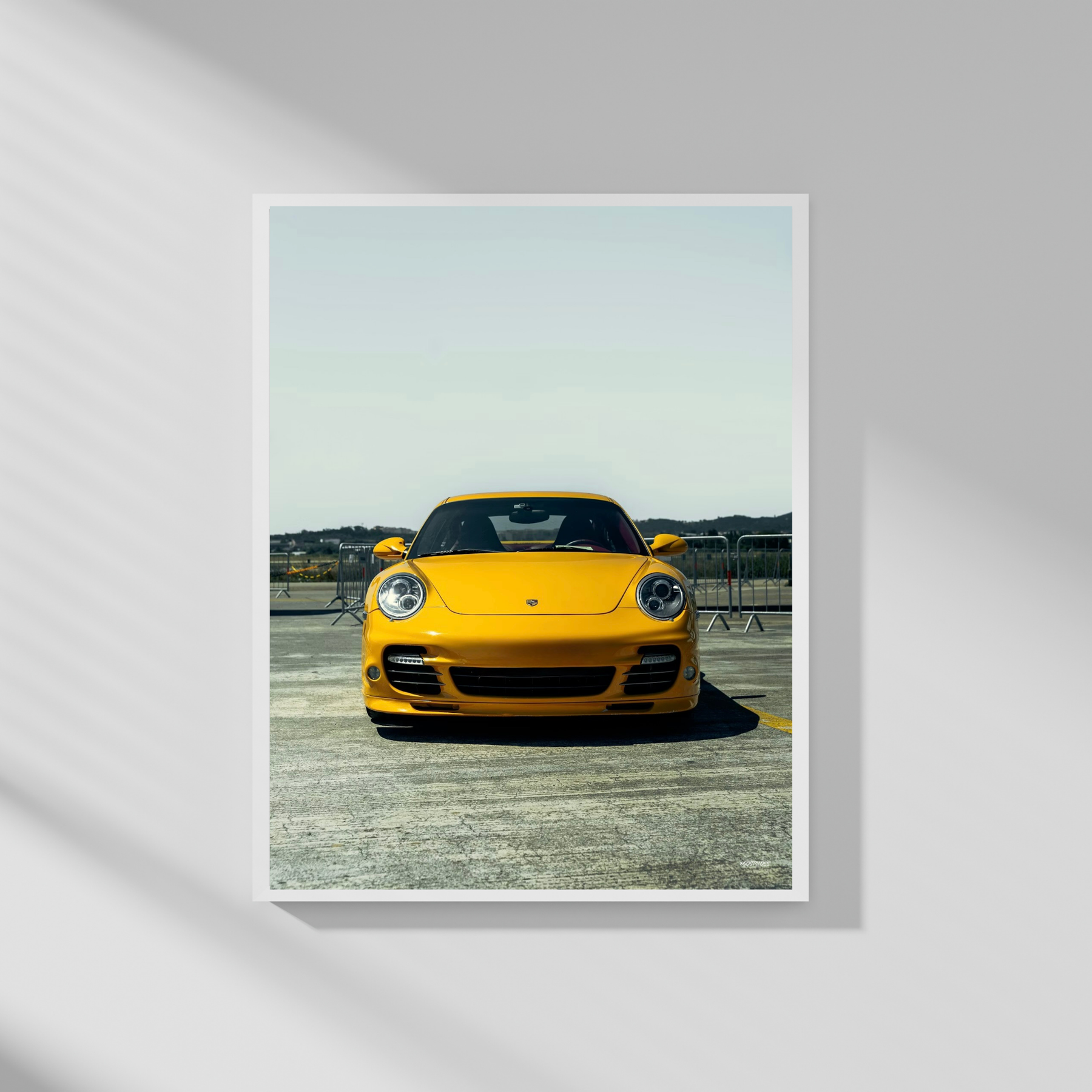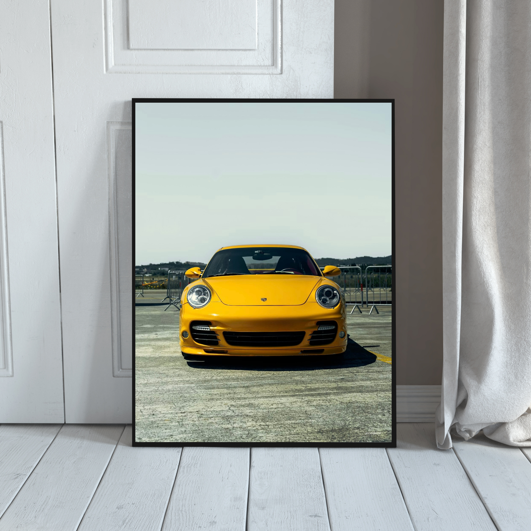 Låt väggarna glänsa av prestanda, färg och ren körglädje med denna poster av en gul Porsche – en bil som utstrålar kraft redan vid första ögonkastet.