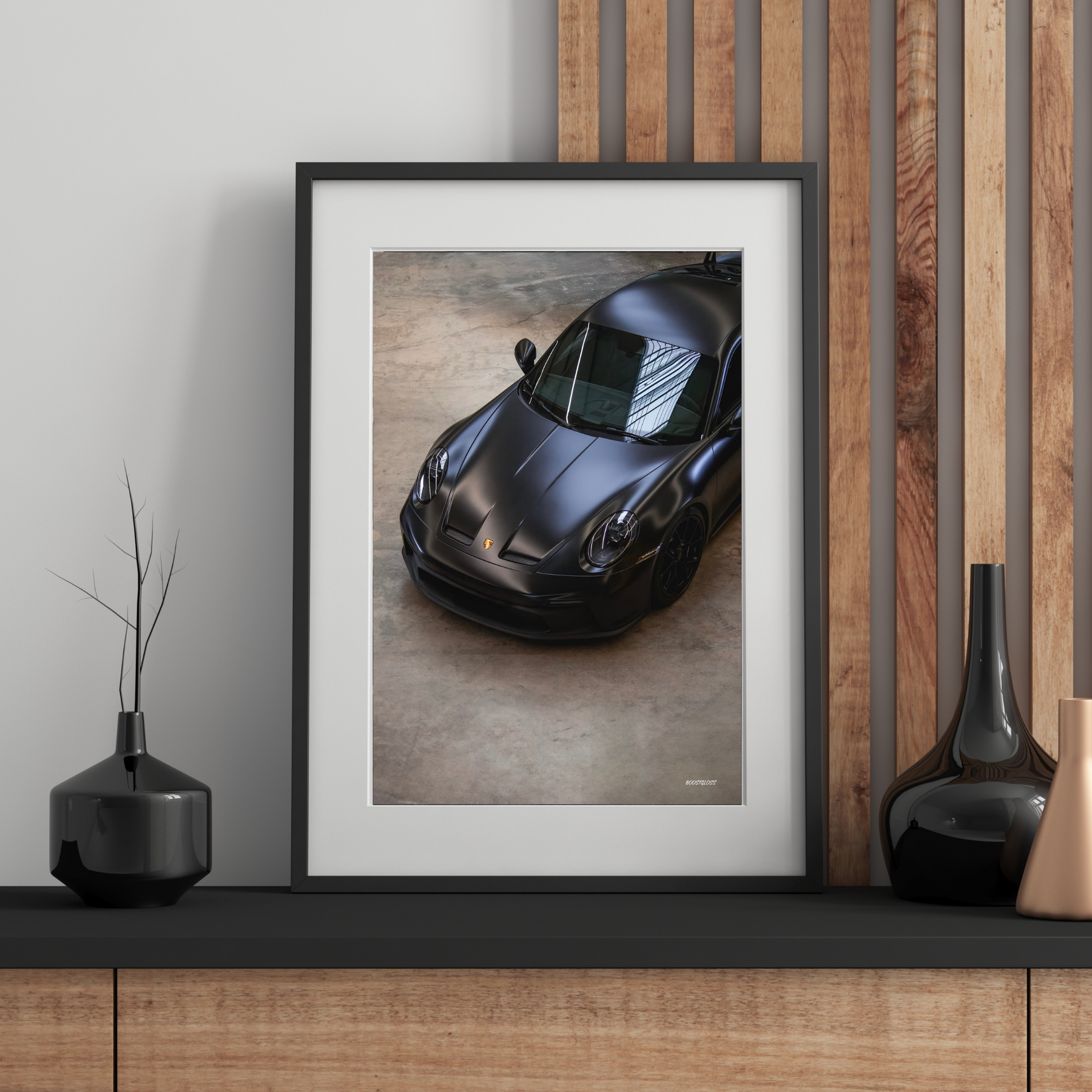 Motivet utstrålar dominans och precision, där den matta ytan absorberar ljuset och framhäver varje detalj i karossen. Postern är tryckt i Sverige på högkvalitativt Glossy premiumpapper, vilket ger en elegant finish, djup färgåtergivning och lång hållbarhet.